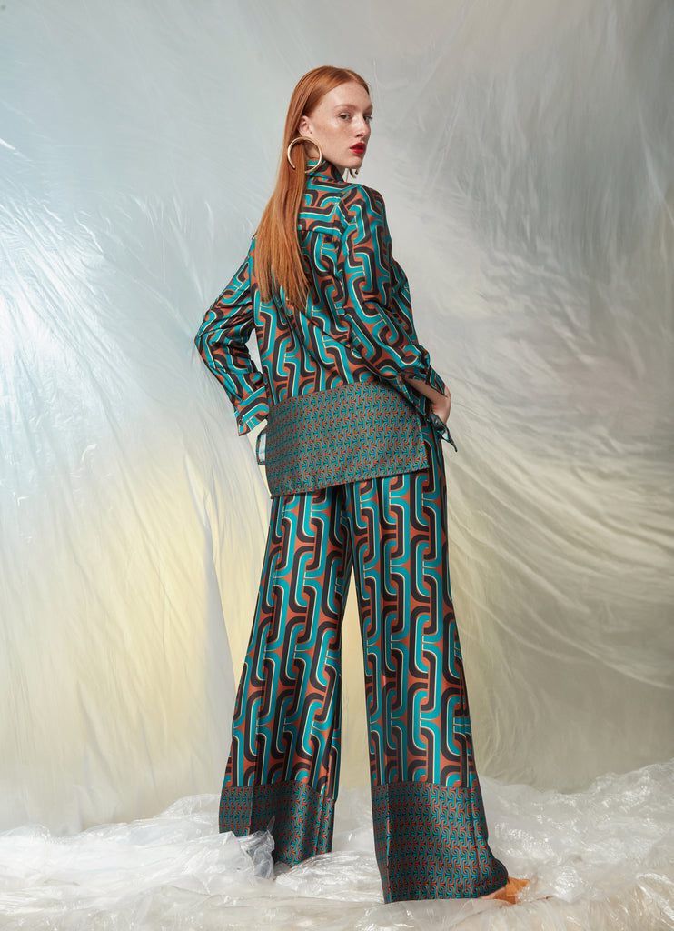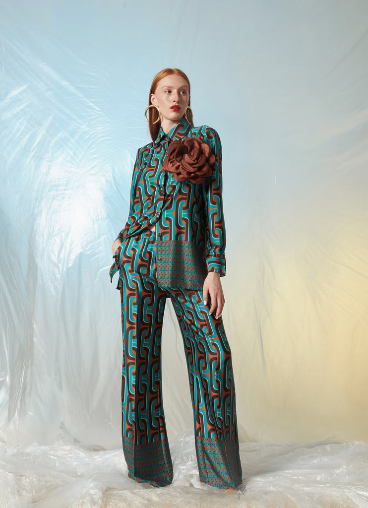Παντελόνα εμπριμέ με ζακάρ φάσα χοντρό σατέν