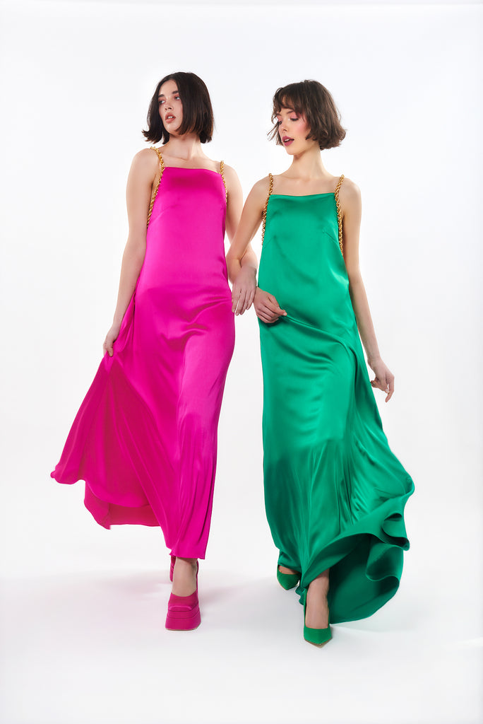 ΦΟΡΕΜΑ ΣΑΤΕΝ ΜΑΞΙ ΜΕ ΔΙΑΚΟΣΜΗΤΙΚΗ ΧΡΥΣΗ ΑΛΥΣΙΔΑ ΚΑΙ ΑΝΟΙΓΜΑ ΣΤΗ ΠΛΑΤΗ