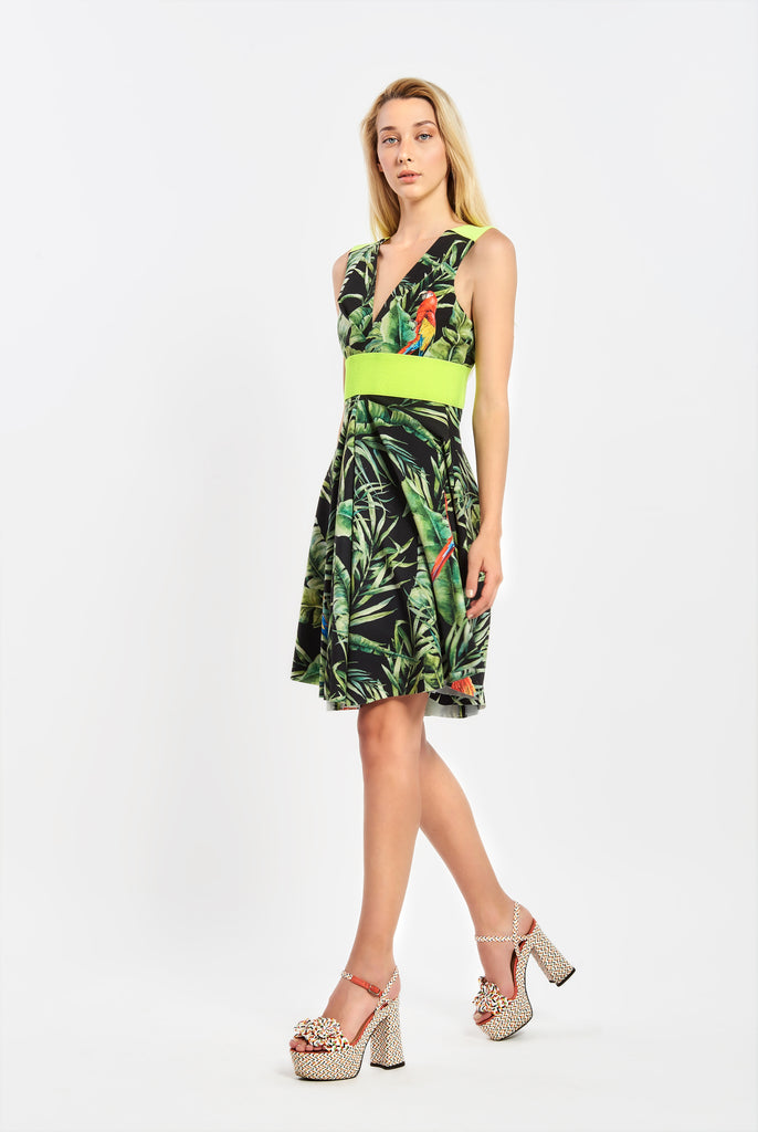 ΦΟΡΕΜΑ ΜΕ JUNGLE PRINT ΚΑΙ FLUO ΛΑΣΤΙΧΟ ΣΤΗ ΜΕΣΗ