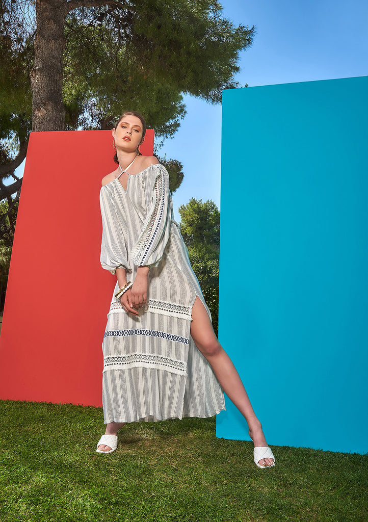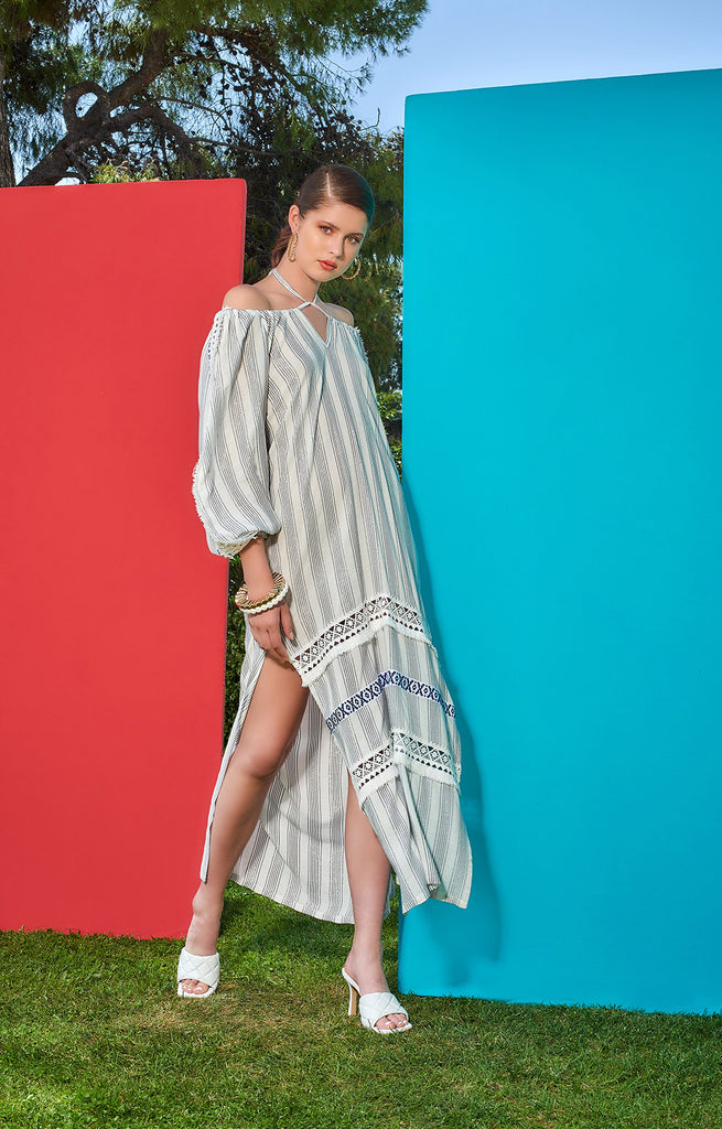 ΦΟΡΕΜΑ MAXI ΚΑΦΤΑΝΙ ΜΕ ΔΙΑΚΟΣΜΗΤΙΚΕΣ ΤΡΕΣΕΣ ΚΑΙ ΦΟΥΣΚΩΤΑ ΜΑΝΙΚΙΑ