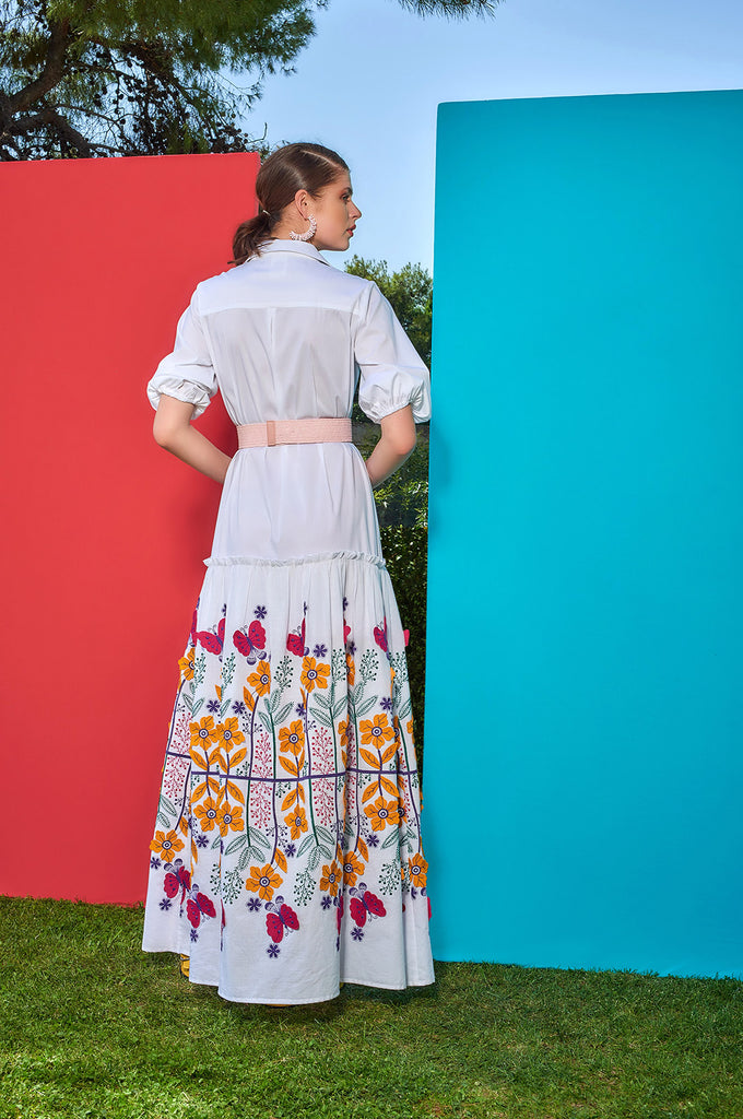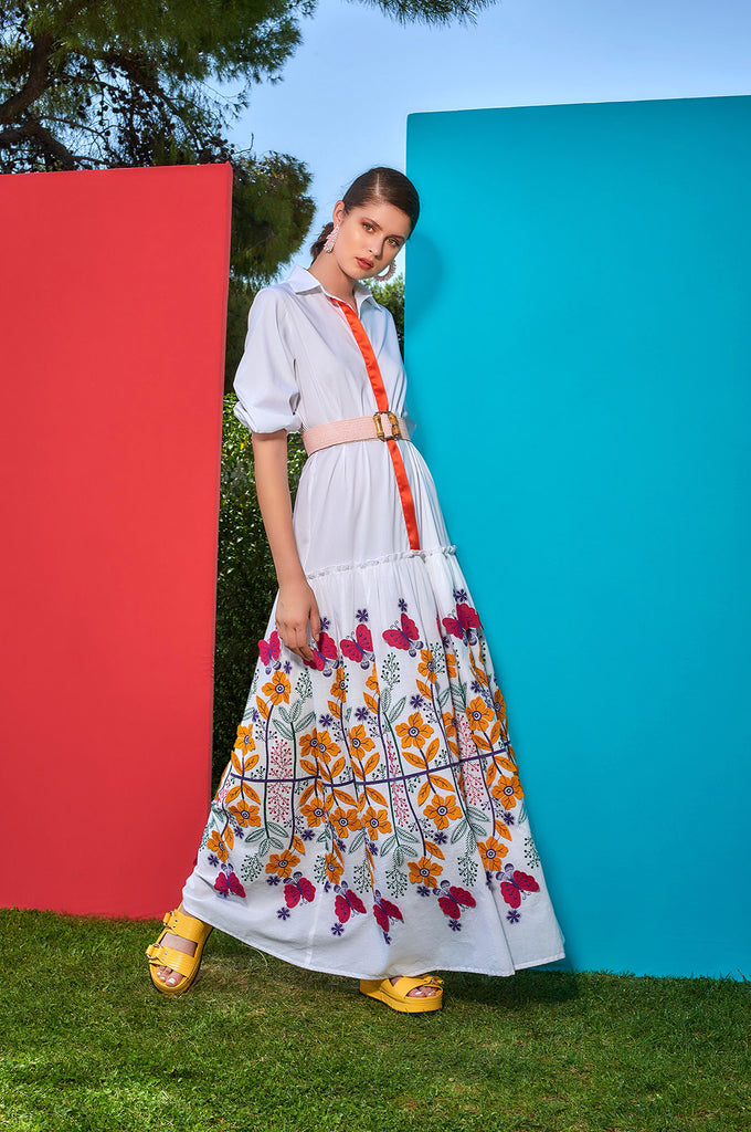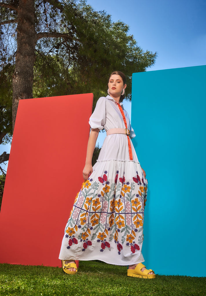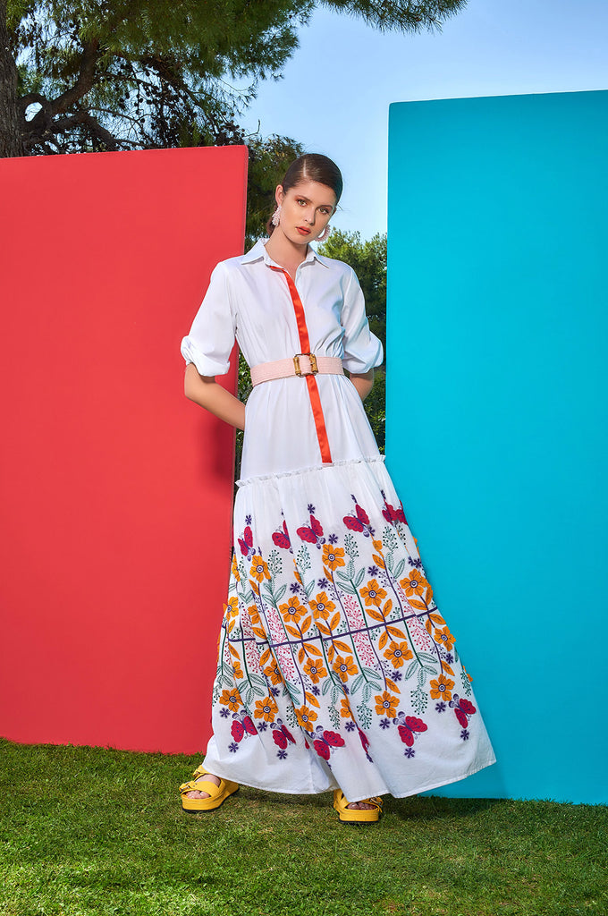 ΦΟΡΕΜΑ MAXI ΜΕ ΜΑΝΙΚΙΑ ΚΑΙ FLORAL ΚΕΝΤΗΜΑ ΣΤΟ ΚΑΤΩ ΜΕΡΟΣ