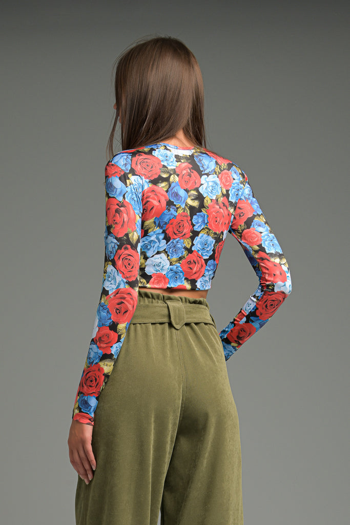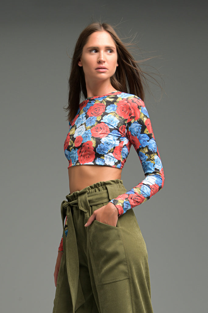 CROP TOP WITH LONG SLEEVE IN FLORAL PRINT