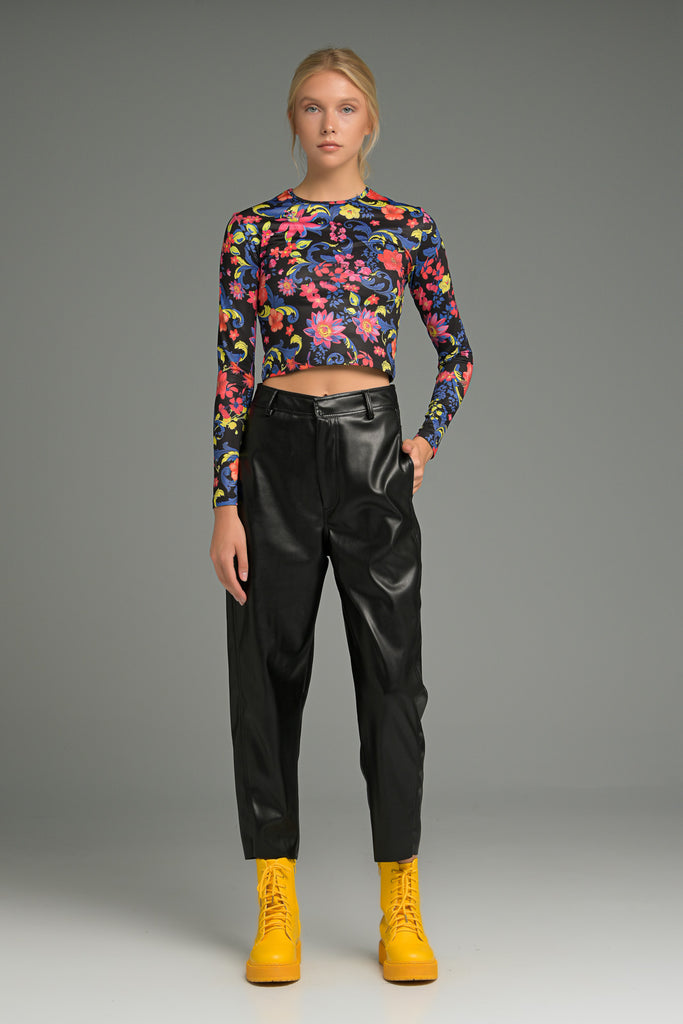 CROP TOP WITH LONG SLEEVE IN FLORAL PRINT