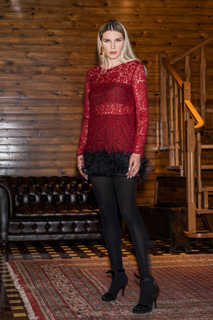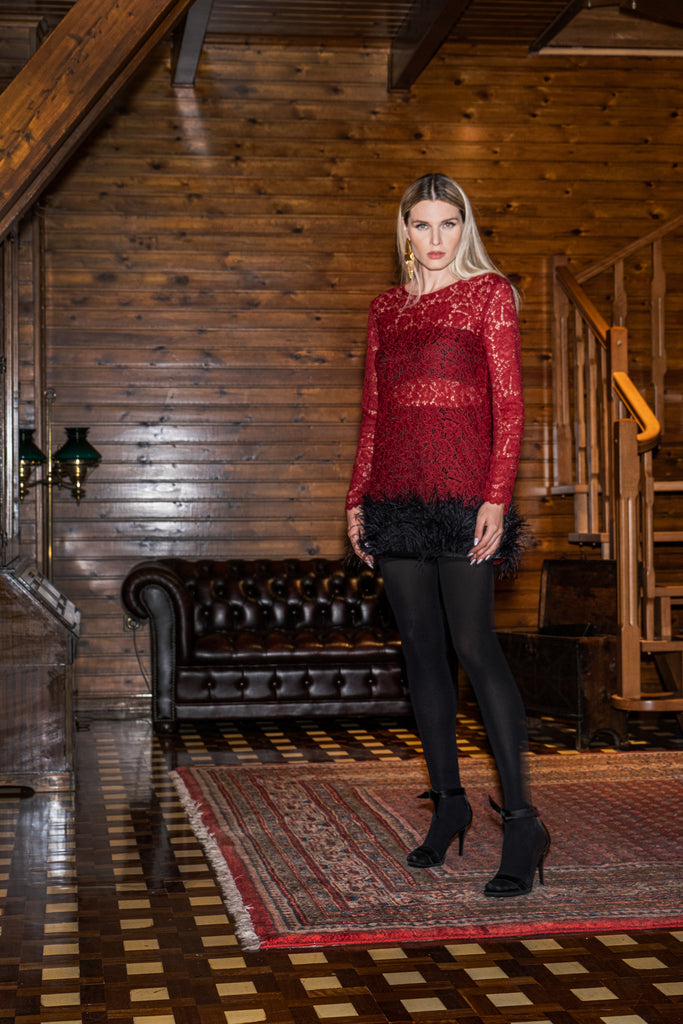 LACE DRESS WITH FEATHERS
