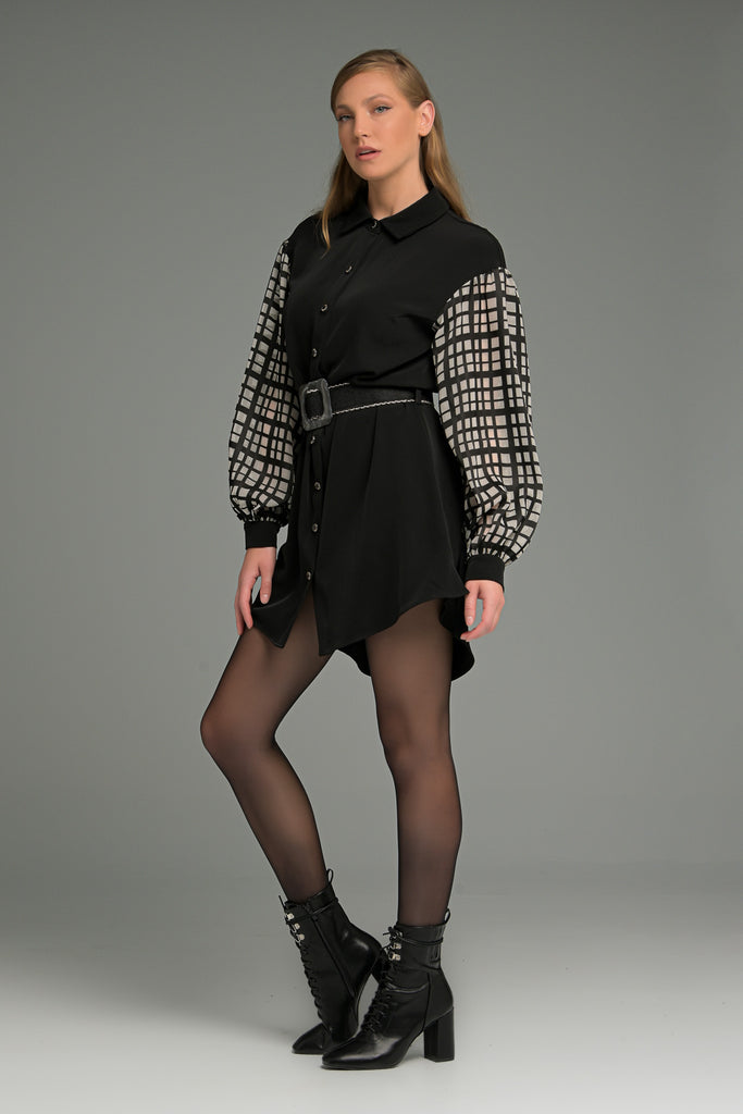 MINI SHIRT DRESS WITH CHECK SLEEVE