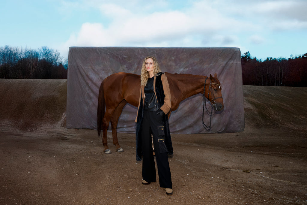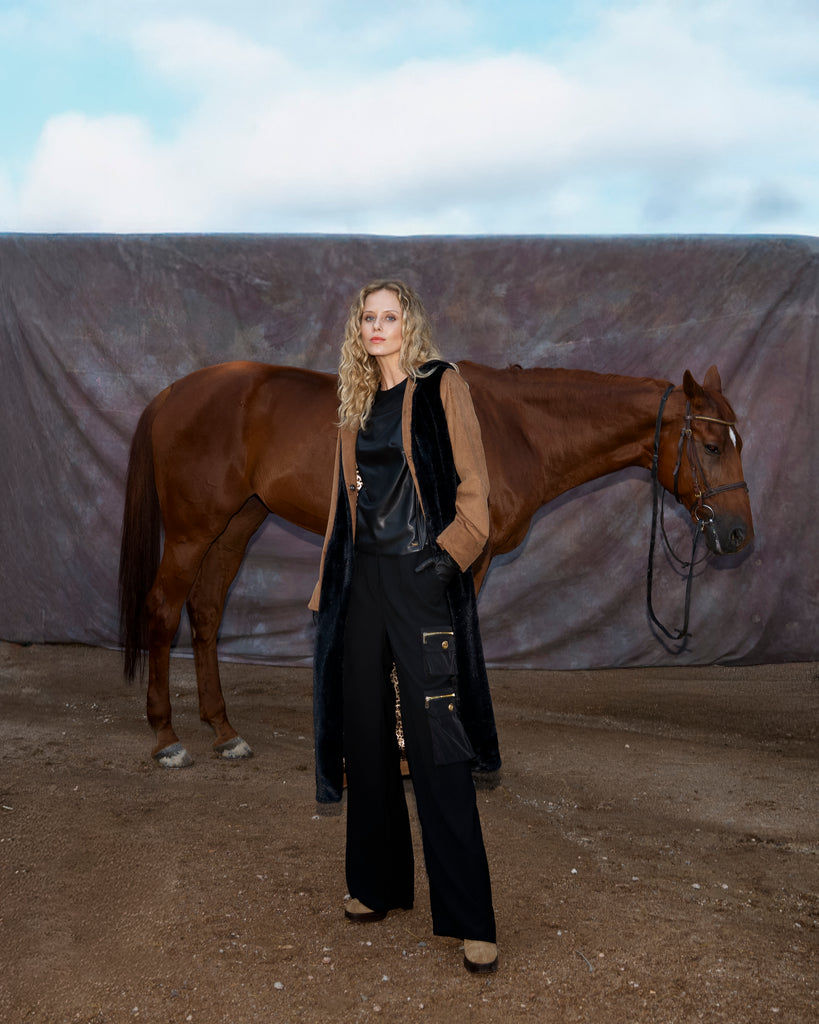 Παντελόνι κρεπ με τσέπες και χρυσό φερμουάρ κουμπί